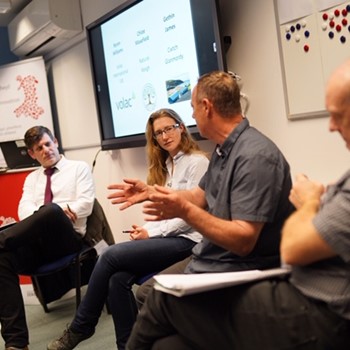 | Iain Cox (left) chairing a panel discussion at the FCW Zero Waste Conference |
